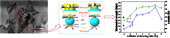 鉴于此,本文研究利用低品位凹凸棒石黏土采用干压成型法制备多孔支撑体,这不仅可以有效利用低品位凹凸棒石黏土资源,而且降低了多孔陶瓷的制备成本,能够获得高性能多孔陶瓷支撑体。以低品位凹凸棒石黏土-碳化硅为骨料,采用干压成型法制备低品位凹凸棒石支撑体,系统研究原料配比、成型压力、烧结温度和添加剂种类及用量等对多孔陶瓷支撑体的微观结构、晶相组成、气体渗透性能、机械强度、耐腐蚀性能的影响。 结果表明,凹凸棒石黏土中加入适量的碳化硅作为骨料,能够有效阻止支撑体在烧结过程中的过度收缩,支撑体的机械强度和孔隙率大幅增加。随着造孔剂添加量的增大,支撑体孔隙率增大,而机械强度降低;成型压力增加使得支撑体机械强度增大,但孔隙率减少。当凹凸棒石黏土/碳化硅为 1.7/1、造孔剂含量为6 %、五氧化二钒添加量为5%,干压压力为10 MPa及烧结温度700 ℃时支撑体性能最优,其平均机械强度为17.76±2.03 MPa,孔隙率44±0.3 %。因为五氧化二钒较低的熔点,使得支撑体在烧结过程中机械强度增加。这不仅为膜支撑体的开发提供了新思路,也充分利用了低品位凹凸棒石的丰富资源,为低品位凹凸棒石的开发利用提供新的方向,避免了资源浪费。