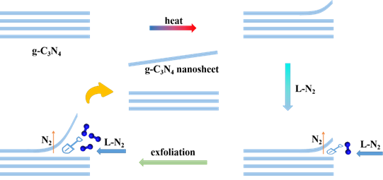 1气相剥落法制备g-C3N4纳米片的剥落机理示意图