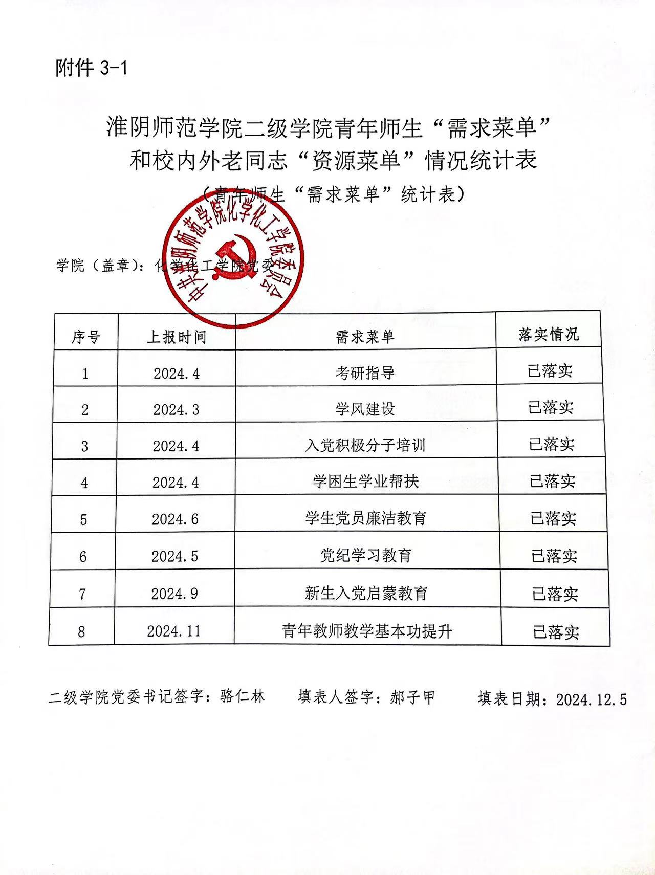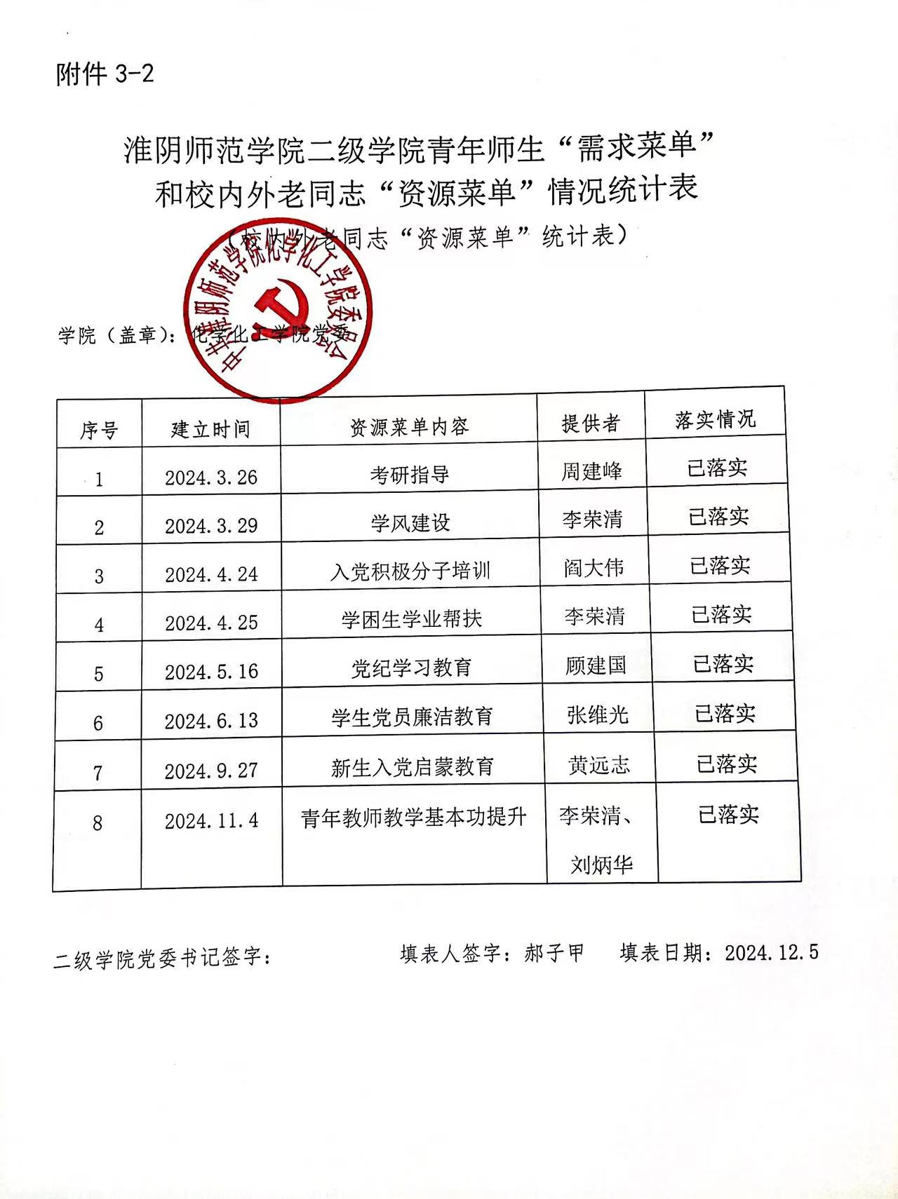 化院青年师生“需求菜单” 和校内外老同志“资源菜单”情况统计表公示