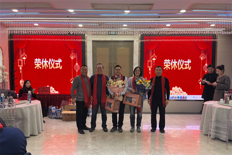现场学院为李康、王红艳两位退休教师举办荣休仪式。化院1997级校友淮安市新瑞鞋业有限公司总经理孙同兵先生为两位老师赠送礼品并合影留念。