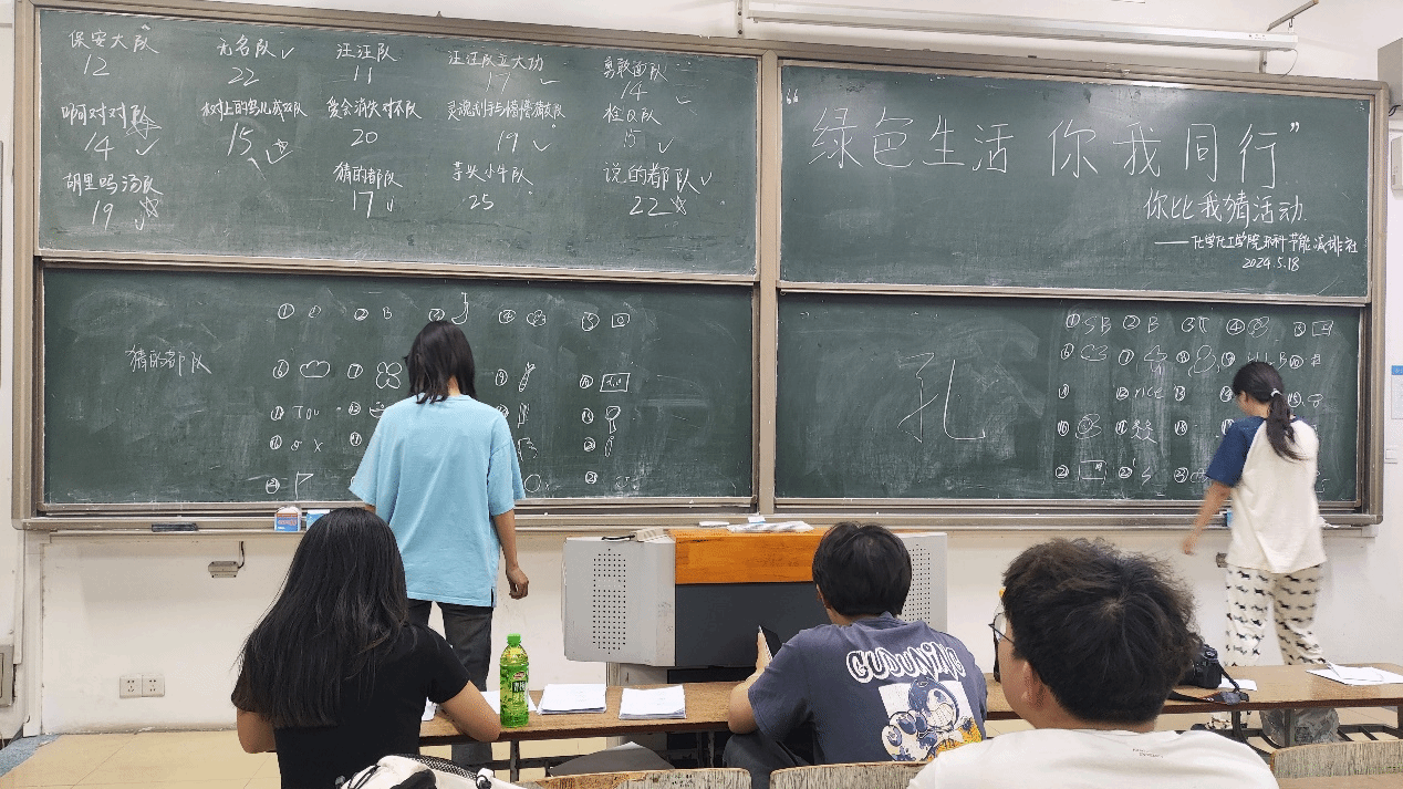 2024年5月18日,淮师化院环科节能减排社在线下举办了“绿色生活,你我同行”你比我猜活动。此次活动旨在强化环保理念,培养创意与想象力,增进交流与沟通,同学们都积极参与本次活动并引起了同学间的热烈讨论。