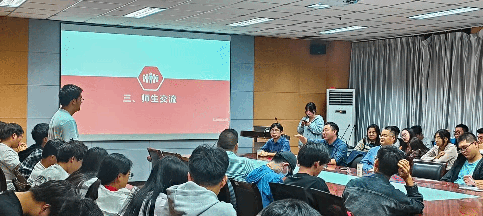 在师生交流环节中,关于专业、科研方向、青鸾计划的面试等方面,同学们积极发言,踊跃提问,其问题的新颖度令在座的教师们无不为之赞叹。周处长和李院长对同学们的生活状况表达了细致的关怀,询问是否存在生活上的困难。整个交流过程中,氛围轻松愉快,所有师生畅所欲言。