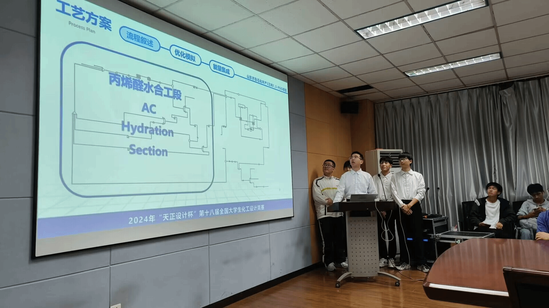 褚效忠教授所带的队伍在“天正设计杯”第十八届全国大学生化工设计竞赛中荣获贰等奖。本次会议邀请到了优秀的学长学姐进行参赛作品的汇报演讲,为新生树立了很好的榜样。