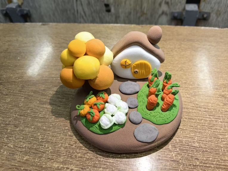 活动伊始,主持人李杰向大家介绍本次活动的主题和意义并安排活动流程。然后,同学们陆续上台领取粘土,于是便开始了自己的手工创作。从随处可见的橘子、茄子、苹果等水果,到生动可爱的卡通人物形象,再到迷你却精致的房子等各种微型景观……每一个作品都是同学们对美学的理解和呈现以及对自身创造性思维的表现,展现了同学们的创作能力和创新潜能,作品完成后,同学们一一上台展示作品,向大家分享自己的创作主旨、内容和方法。