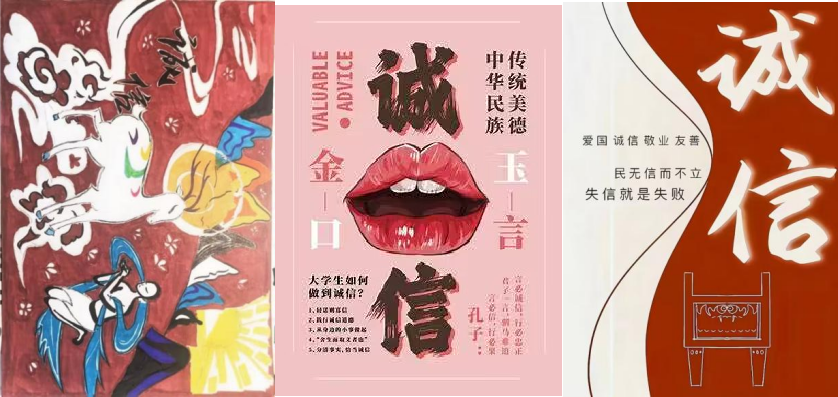 【图为2304班严语乐诚信海报作品】 【图为2207班钱煜诚信海报作品】 【图为2306班郑佳欣诚信海报作品】