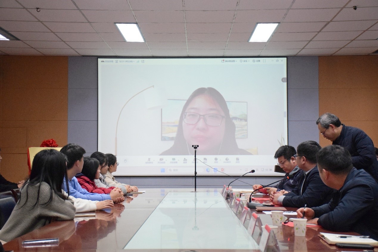 丁静涵代表考研班学生发言。校友代表韩亭亭、李银祥、卢学和、周印瑞、黄志博、耿亮通过视频分享考研心得和体会。