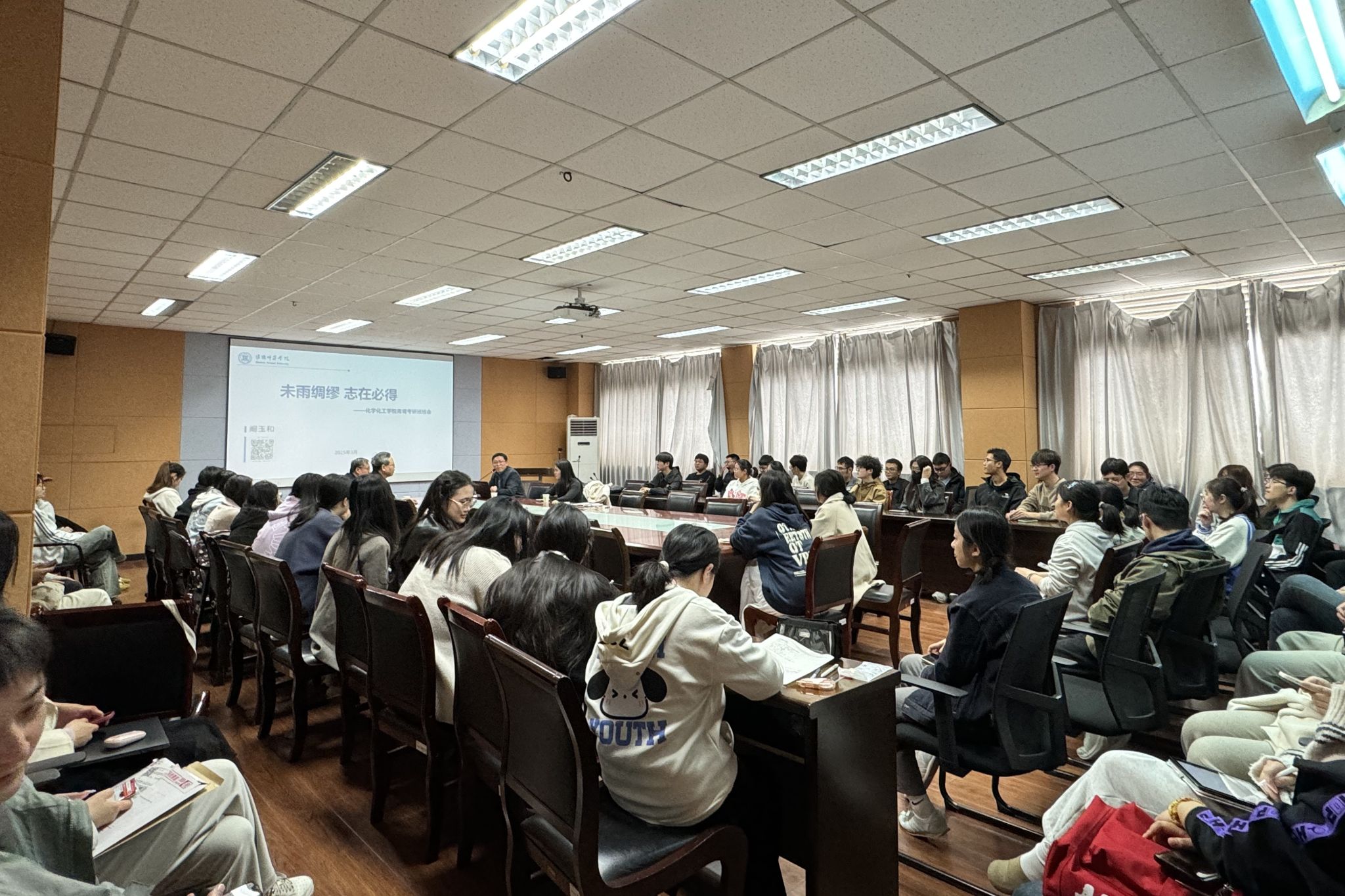 班主任阚玉和老师系统讲解考研常识与备考策略:考研规划:从院校梯度选择、学科前沿动态到时间管理技巧,结合化工学院近年考研数据(如调剂政策、复试评分标准),提供个性化建议;纪律要求:明确考研教室使用规范,禁止乱换座位、喧哗、吃饭等行为,倡导“互助共学”氛围,并计划实行打卡积分制激励学习;