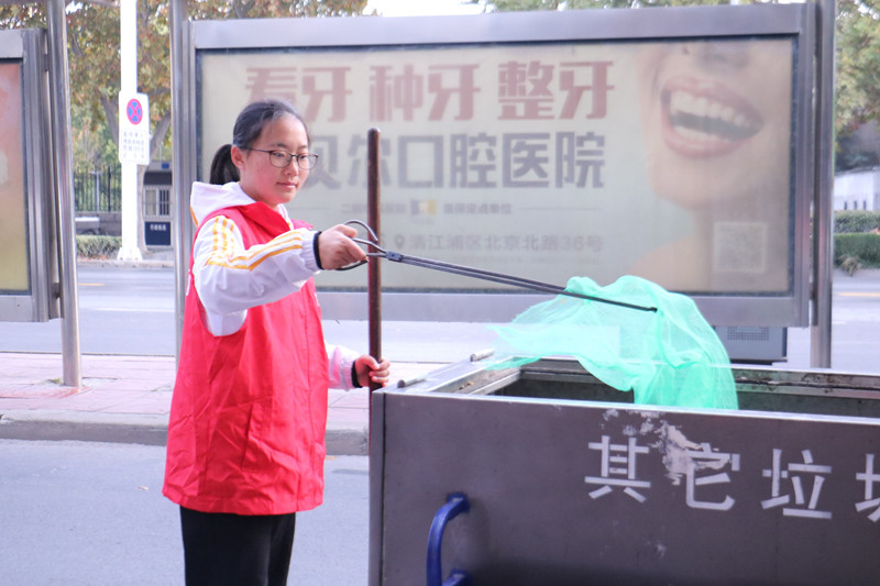 早上5:30,同学们整装待发,分别前往长江路、营西桥中转站、淮河路公厕环卫工人工作地点,进行观摩。清晨的冷风中,环卫工人们早已专注而辛勤地劳动。一个个穿着橙色工作服的平凡身影,为深秋的城市打上了别致而温暖的底色。同学们感慨着环卫工人们的辛苦,目光里早已流露出感激和敬仰的神情。活动分为三个小组:路段清洁小组、公厕清洁小组和营西桥中转站清洁小组。各个小组到达工作地点后,同学们戴上口罩,拿起劳动工具,积极投入道路的清扫。用抹布拂去每一个垃圾桶盖和厕所墙上的灰尘,用大扫把扫去地上的落叶和灰尘,用火钳夹起一片片纸张,同学们满头大汗却热情不减。大家深切地明白了,环卫工人多少次弯下脊背,才守护了城市的洁净庄严。在劳动结束后的讨论会上,同学们纷纷表示一定会更加珍惜和爱护环境。