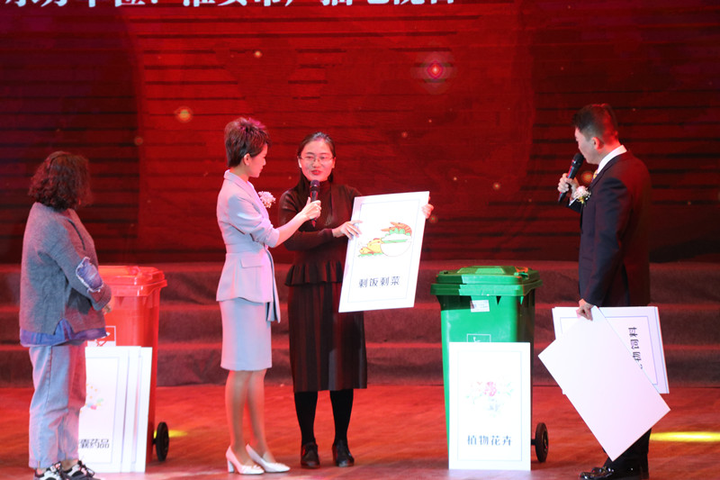 在互动环节,垃圾分类专业指导员淮师化院团委书记苗玮同志作为受邀嘉宾,为大家仔细讲解垃圾分类知识,并对淮安市垃圾分类工作取得的成绩做出赞赏。在VCR中,淮师志愿者带着检测大气质量标准的专业,垃圾分类的严谨和认真,入户宣讲的神采飞扬一次一次的出现在大荧幕上。汇演结束后,城管局的工作人员对“焕青行”志愿者表示感谢并对志愿者的工作予以肯定。