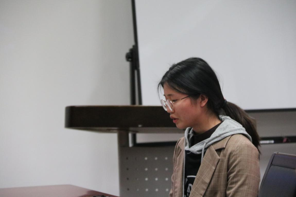 活动尾声,1704班朱莉莉同学作为学姐,为学弟学妹们介绍了自己三年多的工作经验。作为学生干部,她从不托辞,在工作上勇于承担,积极完成自己的任务并协助老师开展学生工作。在自己的学习上,她也丝毫不马虎,多次获得一等奖学金并在考研初试中获得优异的成绩。
