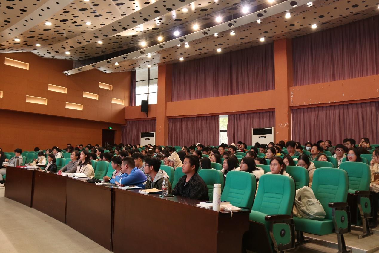 习近平总书记考察北京师范大学时在讲话中指出“四有”好教师的内容:有理想信念;有道德情操;有扎实学识;有仁爱之心。在新政策的教育改革背景下,教师的专业素养、业务能力的提升愈发重要。为提升师范生的专业能力和实际班级管理能力,在学院周院长的部署下,19级、20级、21级师范生于11月12号下午两点在崇文阶-106共同参加淮阴区开明中学刘清老师的工作经验讲座。