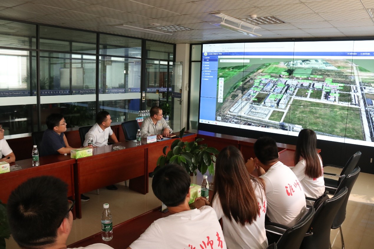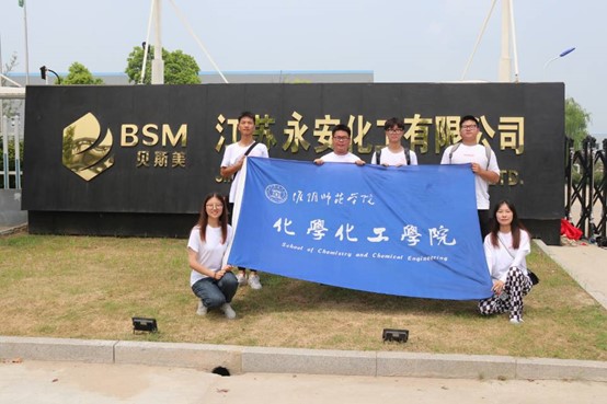 早上八点,队员们准时从淮师出发,经过五十分钟的车程,顺利到达江苏永安化工厂有限公司。公司总经理方浙能先生讲解了公司的智慧化管理、二甲戊灵的相关生产工艺及工厂规模化生产的流程,发展前景及注意事项。此外,公司总经理还带我们学习了工厂安全制度和相应的各种安全措施、注意事项;参观了公司生产流水线,聆听相关讲解,学习主要设备名称、型式、规格、结构及作用;学习了学习岗位所采用的生产方法、基本原理和工艺主流程。中午11:00全体人员合影留念后乘车返回。