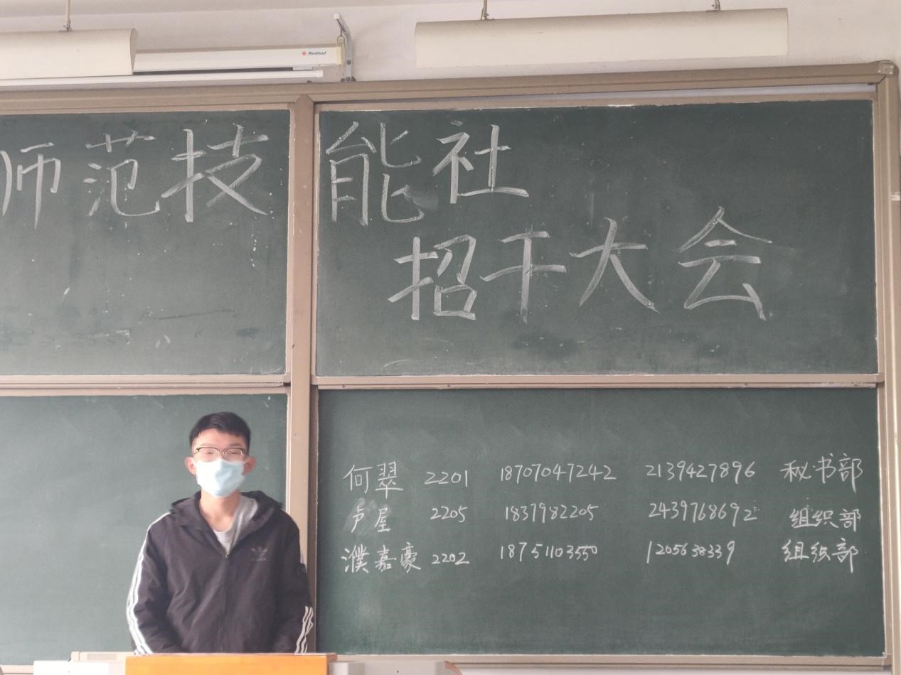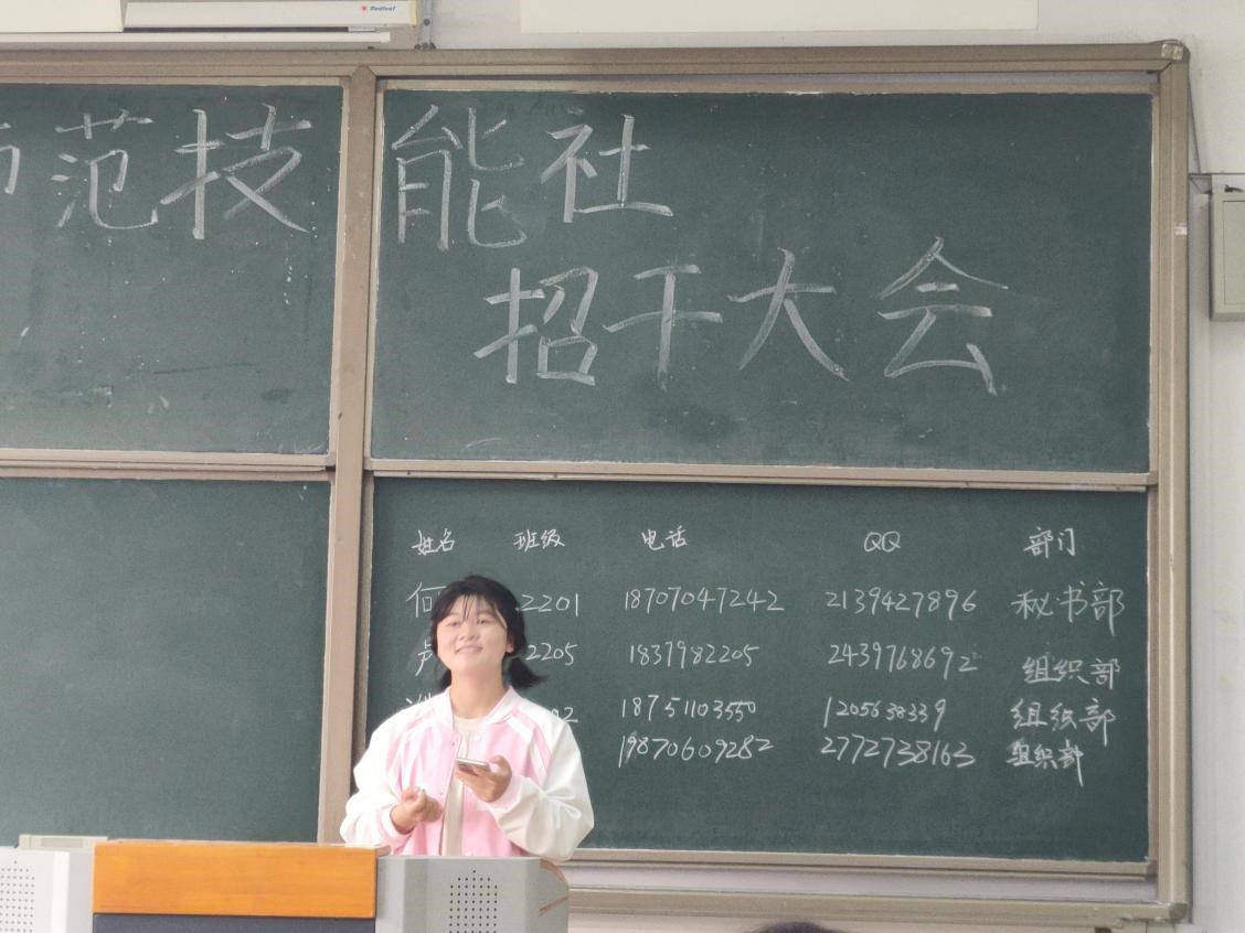 10月30日,化学师范技能社在崇文楼1-202面向化院新生开展招干大会。随着新生逐步适应了学校的环境,化学师范技能社也迎来了不少新鲜血液。各部门分工合作、各司其职,虽然早期宣传工作相对艰难,但大家对工作的热情却丝毫不减,各部门部长不但热情的给同学们介绍化学师范技能社的基本情况,讲解了四个部门职能及特色,还耐心的对同学们的提问进行解答,以便帮助同学们更好的了解化学师范技能社,让更多的同学加入化学师范技能社这个充满青春与活力的团队中来。通过大家的努力,前来报名的同学是热情高涨,在招干会中精彩发挥。