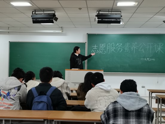 活动开始之前,团支书与团支部成员商讨活动内容与活动形式,最终确定活动方案。首先,由团支书向同学们介绍此次活动的目的和意义,希望同学们通过此次培训学习的过程,不断提高自身素质,从而更好地投入到志愿服务中去。其次,团支书通过演示文稿向同学们介绍典型的志愿服务事例。最后,同学们之间相互分享自己的志愿服务经历。