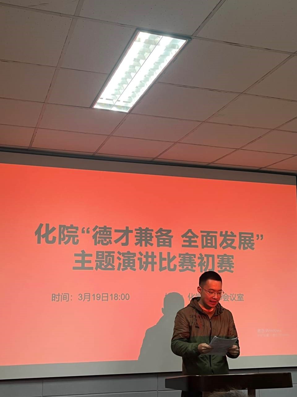 第一环节:主持人做演讲比赛开场白。化院信息宣传部部长闫硕同学就本次活动举办意义做出积极阐释,详细讲解了比赛要求、评分细则,并公布了此次活动评委。