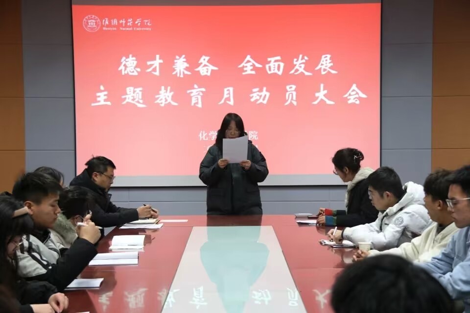 叶娟老师对学院部署主题教育月活动做出具体阐述,提出要结合学院专业特色及学生兴趣、现实情况深入开展主题鲜明、形式多样的教育活动,并表达了对化院全体同学的期望,希望化院的全体同学能够积极参加,踊跃表现,全体师生共同致力于本次主题教育月活动的高效开展。