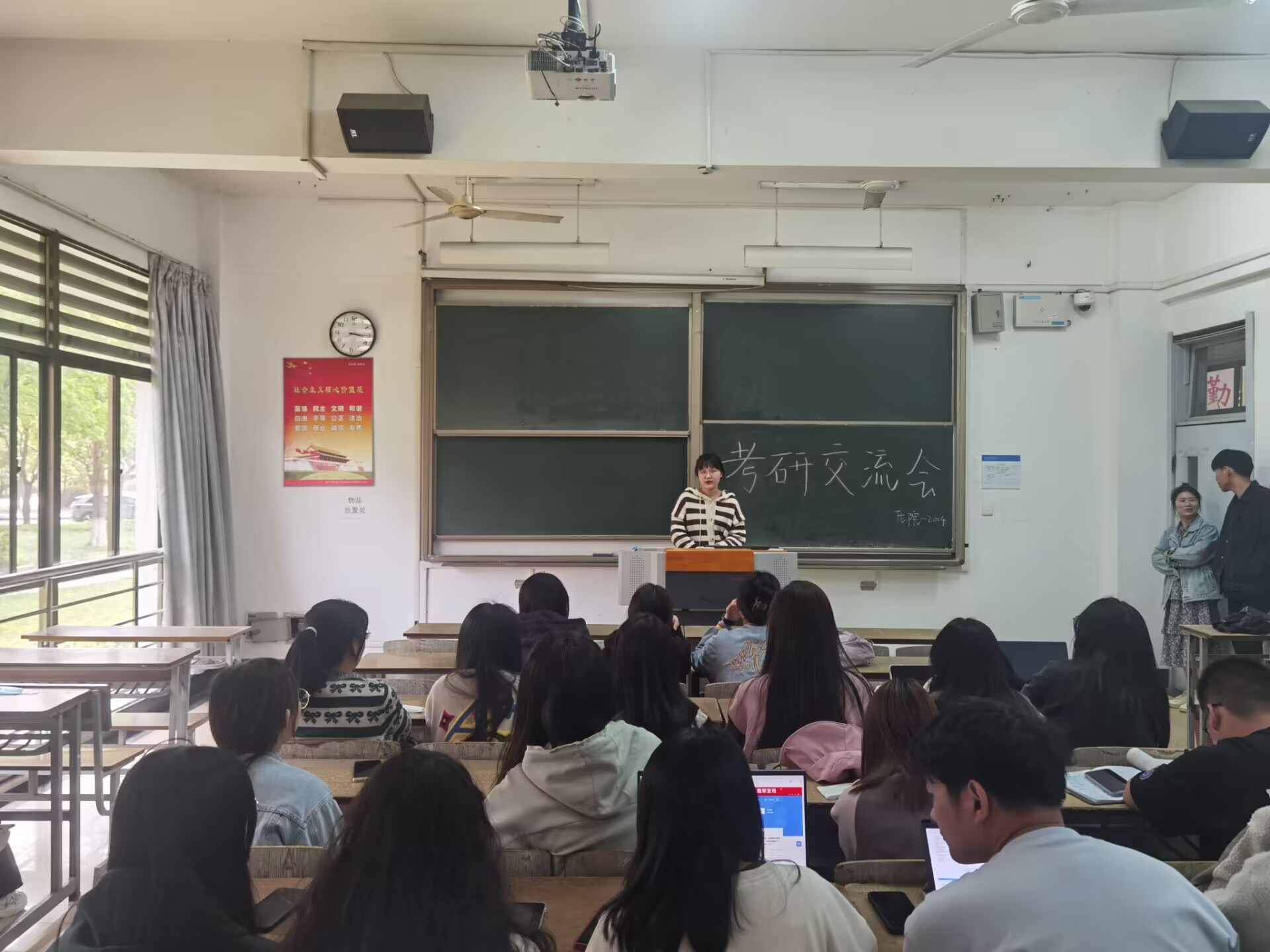 图为学姐向同学们讲述考研经验