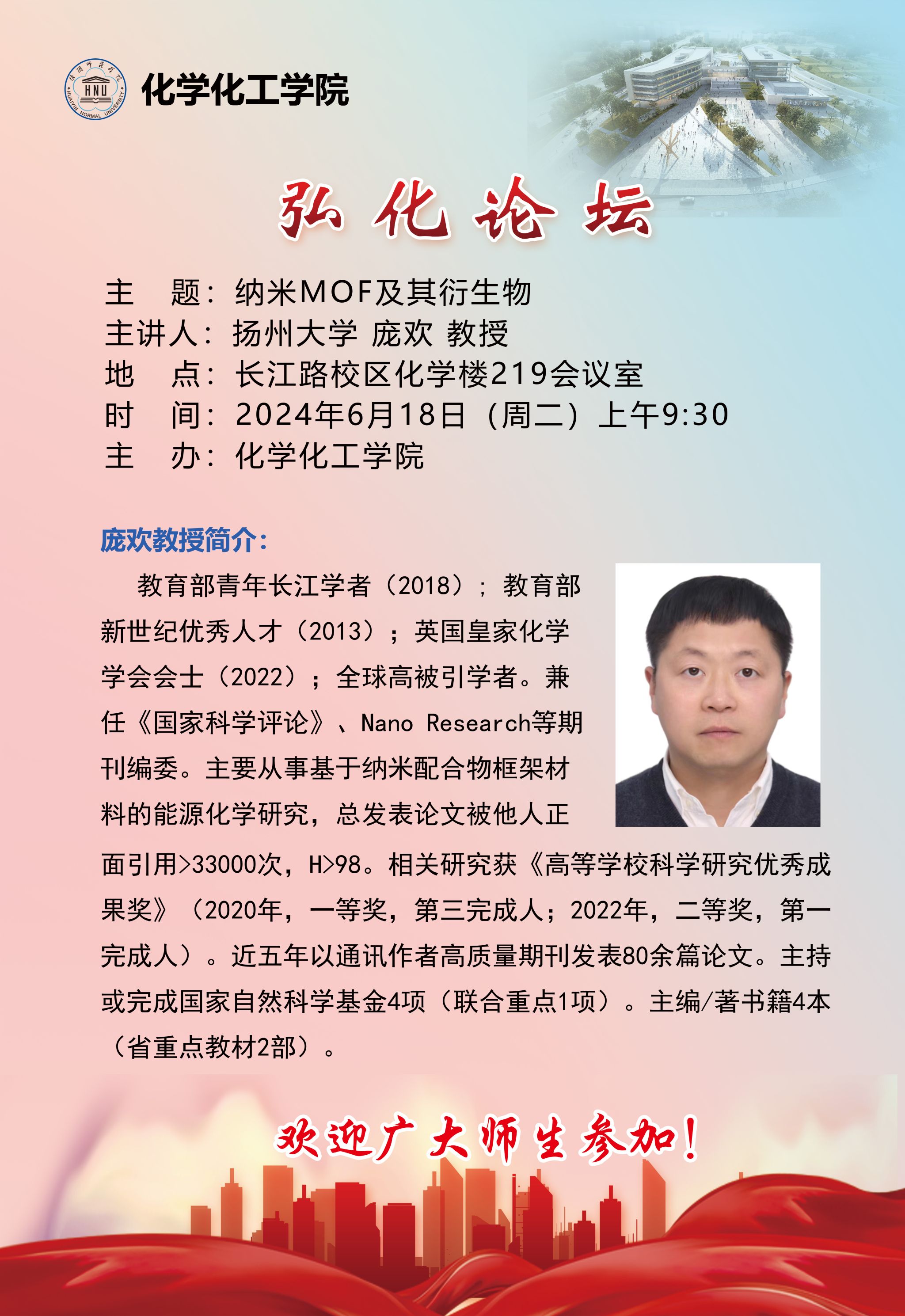 【弘化论坛】庞欢:纳米MOF及其衍生物