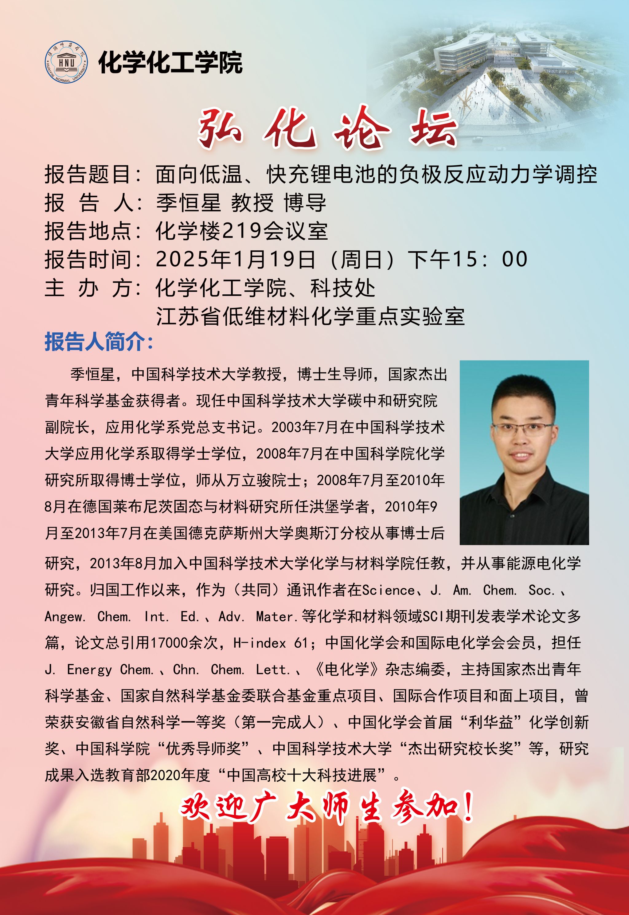 【弘化论坛】季恒星:面向低温、快充锂电池的负极反应动力学调控