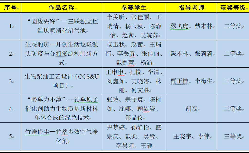 化院在第四届江苏省大学生节能减排社会实践与科技竞赛中取得佳绩