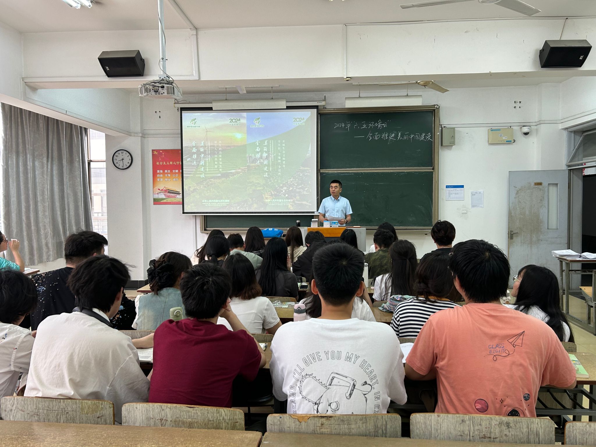 6月5日上午,化院环境科学专业负责人曹远鑫、徐宁组织2104班46名环境科学专业学生学习了生态环境部发布的2024年六五环境日主题海报:《站在人与自然和谐共生的高度谋划发展》《全方位、全地域、全过程开展生态文明建设》《坚持山水林田湖草沙一体化保护和系统治理》和《激发起全社会共同呵护生态环境的内生动力》。