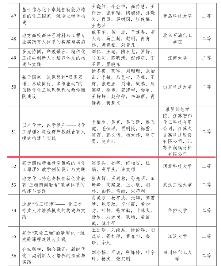日前,第七届中国石油和化工教育教学成果奖获奖名单公布,化院李梅生教授团队的“以产化学,以学促产——《化工原理》课程群产教融合育人模式构建与实践”项目获教育教学成果二等奖(本科类)。