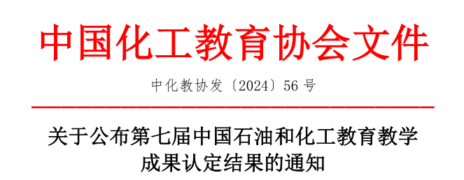 中国石油和化工教育教学成果奖是中国石油和化学工业联合会、中国化工教育协会联合颁发的重要奖项。该奖项旨在贯彻落实《中国教育现代化2035》文件精神和全国教育大会精神,推动落实立德树人根本任务,强化教育服务石油和化工产业发展的能力,并展示我国石油和化工教育领域取得的优秀成果。来自高等本科院校、职业院校、企业等单位500余项成果参与评选。经过专家初审、复审、公示等程序,共认定本科院校优秀教学成果奖84项、论文奖39项、教材奖25项。