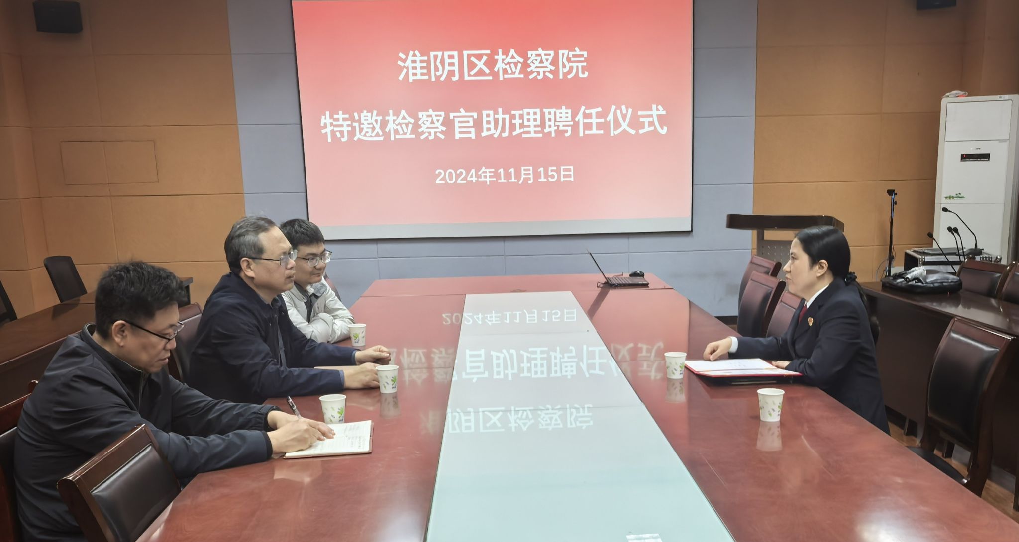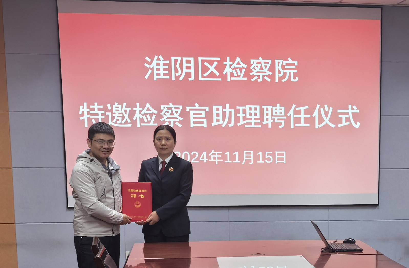 11月15日淮阴区检察院特邀检察官助理聘任仪式在77779193永利官网219会议室举行,化院胡华友教授被聘为淮阴区检察院特邀检察官助理。淮阴区检察院张海芹副检察长、化院党委书记骆仁林、分析测试中心主任阚玉和出席聘任仪式。图为张海芹副检察长向胡华友教授颁发聘书。