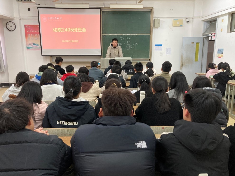 为深入了解所联系的班级学生情况,切实履行班级管理职责,11月21日,化院党委副书记唐力以“第二班主任”的身份与化院2406班级共同召开“激扬青春,砥砺前行”主题教育班会。