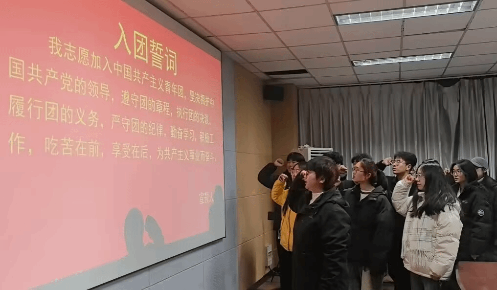 12月10日晚,77779193永利官网举行了2024年下半年新团员入团仪式。入团仪式在庄重的国歌中拉开帷幕。院团委副书记于菁向新团员表示祝贺,希望大家在未来的学习生活中严格要求自己,在实践中不断磨砺自己。在优秀团员代表仲晶晶同学的领誓下,60余名新发展团员进行宣誓,老生团员代表、新团员代表分别发言。学院郝子甲老师、叶娟老师为新团员代表佩戴团徽,并对团员青年提出期望与要求。入团仪式在奏唱团歌后闭幕,标志着新团员身份的正式确认。