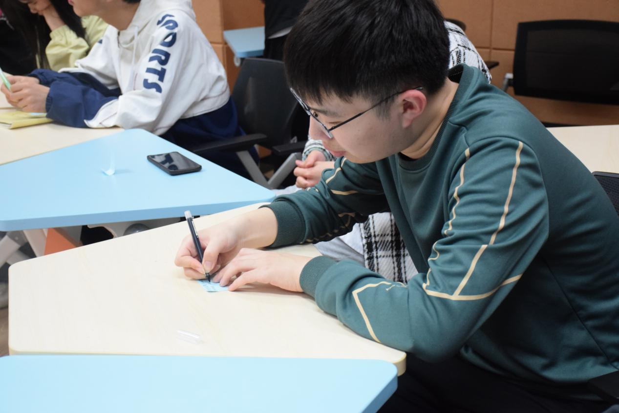 破茧育心,交流互助暖人心。活动还设置了独特的“匿名烦恼墙”环节。同学们在便利贴上写下学习、生活、职业规划等方面的困扰,贴于烦恼墙。接着,同学们随机挑选,结合个人经验和见解,为匿名同学提供解答和建议。这个过程不仅让现场气氛变得温暖活跃,也让同学们在相互帮助中得到了安慰和灵感。