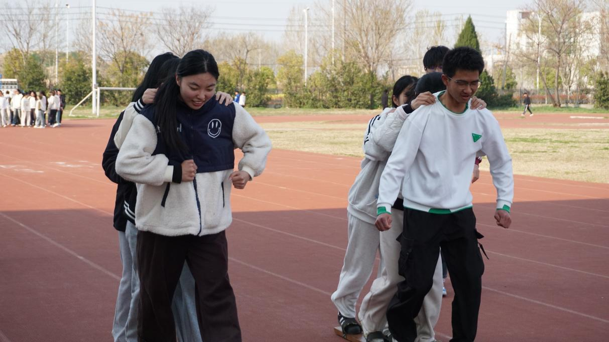 聚力协作,竞技生辉。在团体运动环节中,拔河比赛和趣味接力赛成为了众人瞩目的焦点。在拔河的赛场上,各组队员紧握长绳,口号声铿锵有力,在协作中深刻体验到团队的力量;而趣味接力赛则巧妙地融入了乒乓球、跳绳接力等创意元素。比赛过程中,同学们全神贯注,密切配合。此外,活动还特别设计了“三人成行”项目。通过相互沟通,同学们不断调整节奏,顺利完成了比赛,在紧张的角逐中深刻体会到默契配合的重要性。