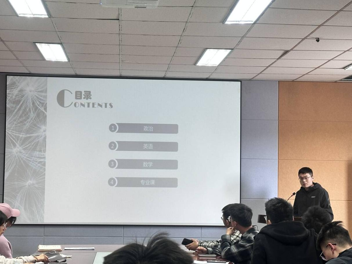 蒋荣贵学长作为“考研考编双上岸”的典范,系统梳理了考研政治、英语、数学和专业课的学习方法。他强调,政治复习需以刷题巩固知识点为核心,英语则要注重词汇积累与写作模板训练,数学重在题型归纳与错题总结,而专业课复习则需结合目标院校的命题风格有的放矢。蒋荣贵还分享了时间管理技巧,建议同学们采用“分阶段冲刺+定期模拟测试”的模式,确保复习效率最大化。其全面且详尽的经验分享为同学们提供了极具实用性的备考指南。