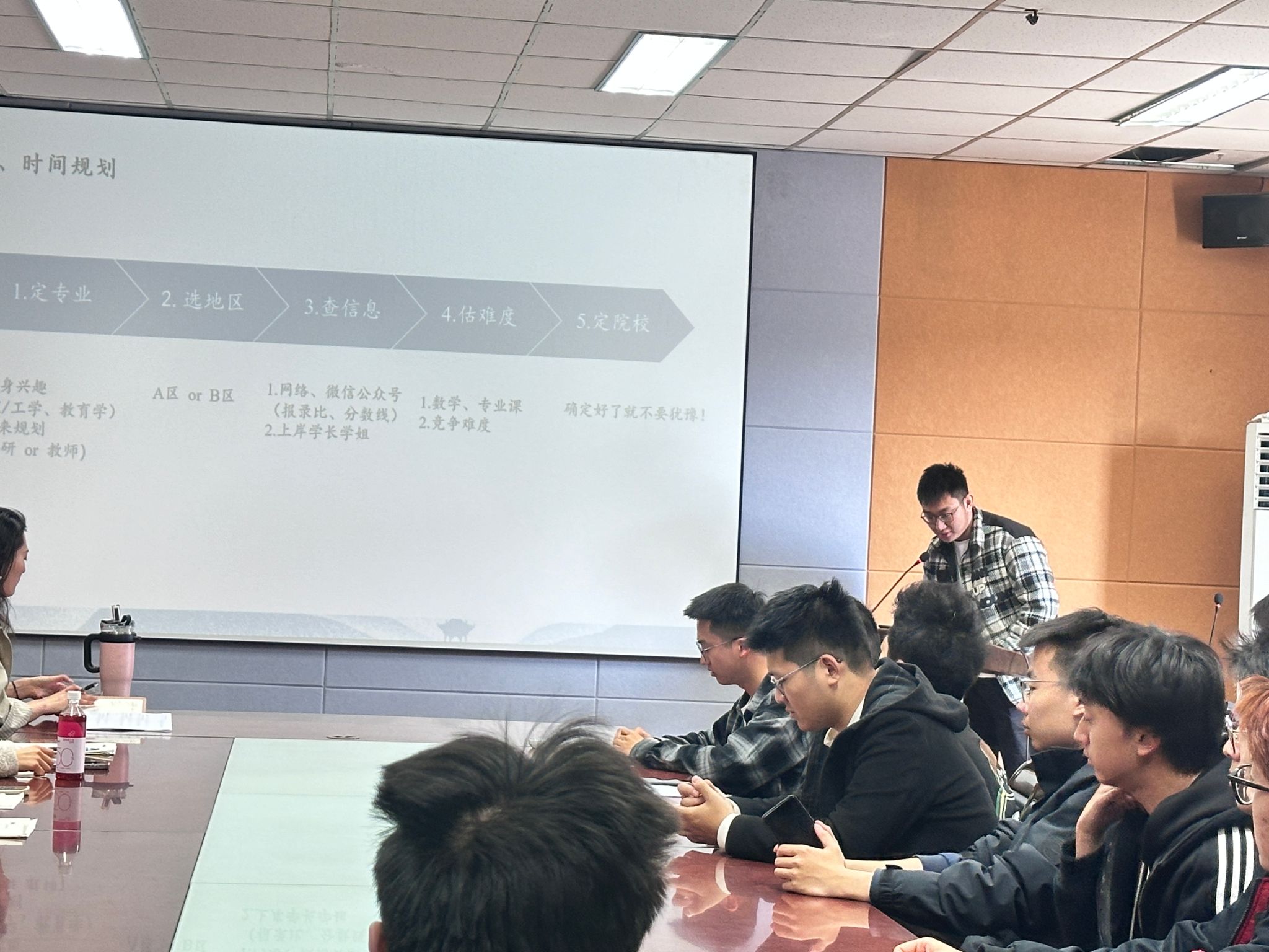 考编经验分享同样精彩纷呈。潘智阳学长以“考研还是考编?如何做出最优选择”为切入点,结合自身笔面双第一考取苏州高新区初中化学编制的经历,深入分析了当前考研与考编的就业形势。他指出,近年来化学类研究生扩招与编制考试竞争加剧并存,同学们需根据自身兴趣、职业规划和现实条件理性抉择。潘智阳还分享了考编备考的三大关键:政策研究、真题模拟和面试技巧训练,并特别提醒同学们关注各地编制考试的报考门槛与岗位需求动态。其务实的建议引发了在场同学的热烈讨论。