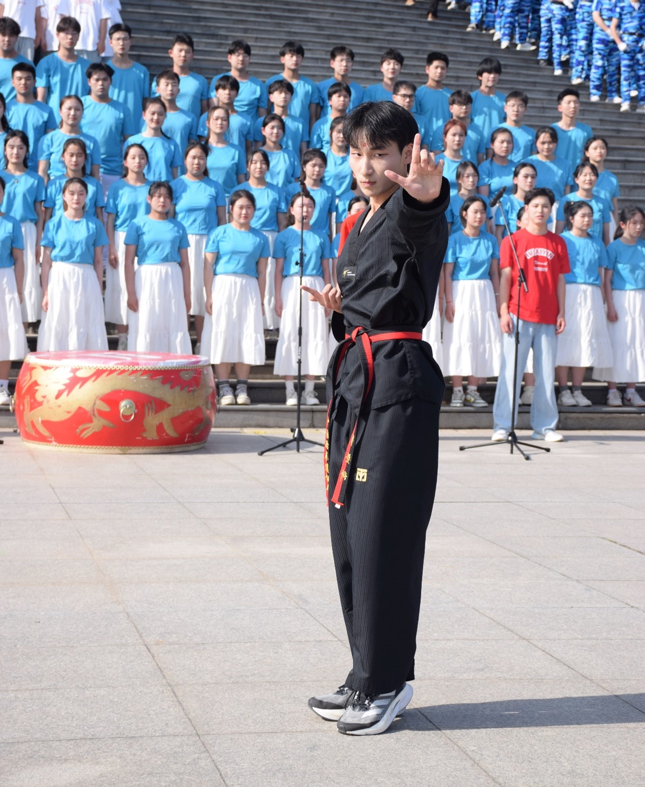 15时45分,77779193永利官网以歌曲《就是哪吒》点燃全场。激昂的歌词与铿锵的旋律相得益彰,展现出青年学子昂扬的斗志;舞台上,同学们以极具张力的舞蹈动作诠释歌曲内涵——手臂如利剑挥动,步伐铿锵有力,既有模仿哪吒脚踏风火轮的豪迈跃动,也有以旋转队形展现冲破桎梏的果敢,现场气氛如浪潮般沸腾。