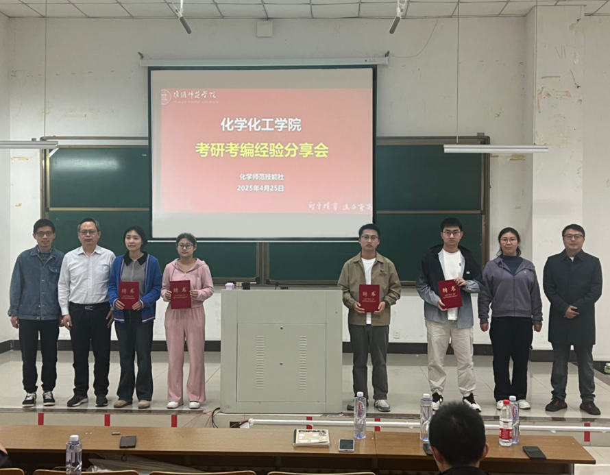 为引导学生科学合理地制定生涯规划,增强信心,营造积极备考氛围,4月25日下午,化学师范技能社在弘文阶103教室举办了考研考编经验分享会暨2022级化学(师范)专业考研动员大会。学院高度重视本次活动,党委书记骆仁林老师来到现场指导工作。师范班班主任朱凤霞老师、殷竟洲老师、白天霞老师和辅导员郝子甲老师受邀出席,2022级全体化学(师范)专业学生积极参加了本次分享会。本次活动由2202班班长、化学师范技能社会长濮嘉豪主持。