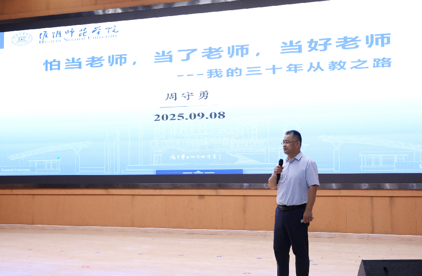 9月8日下午,为庆祝第41个教师节,淮阴师范学院团委、学生会在长江路校区崇文楼106举办“师咖驾到”第十七届“我最喜爱的老师”分享会。化院周守勇老师获第十七届“我最喜爱的老师”荣誉并现场分享育人故事。