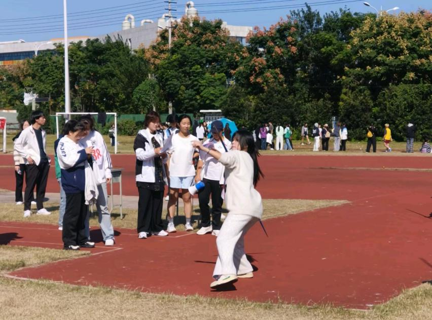 龙狮翻腾庆开幕,武术展雄姿,八段锦抒雅韵,运动盛会启华章。开幕式上,化院代表队以整齐的队列、昂扬的精神状态有序入场,既体现化学“严谨求实、探索创新”的科学特质,又展现“奋勇拼搏、锐意进取”的体育精神,充分彰显化院学子的综合素养。2302班魏易同学代表全校运动员进行宣誓。操场上,体育部、通讯部、外联部等学生组织穿梭各赛场,以高效服务保赛事顺畅,助运动员全力比拼;竞赛场地内,运动员们严格遵守赛事规则,在各项目中全力以赴,为化院再夺桂冠而努力。