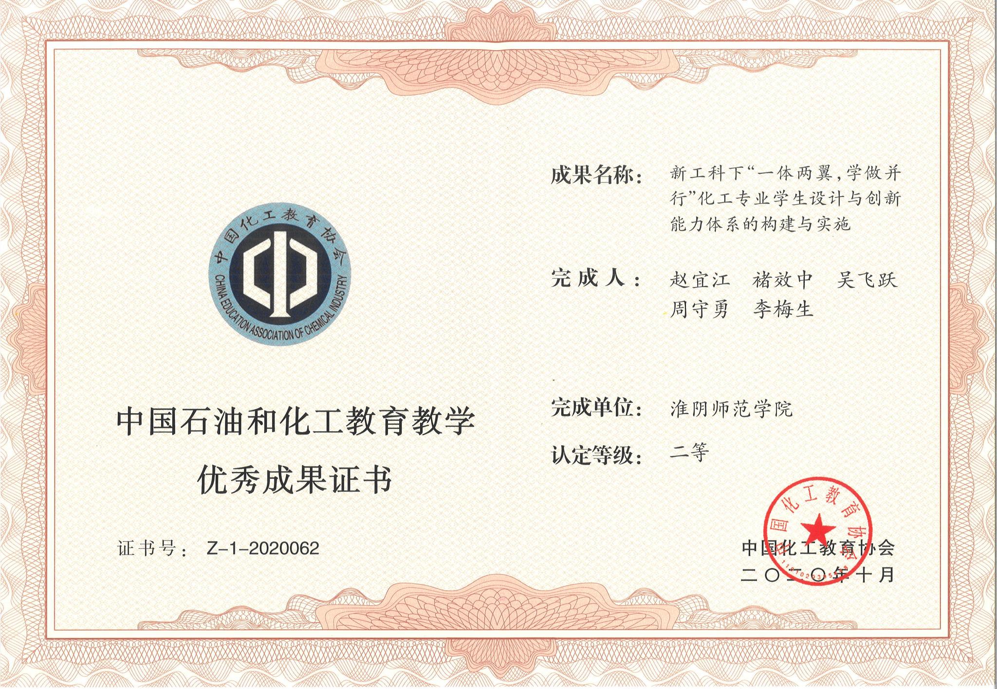 化院获第五届中国石油和化工教育教学成果奖