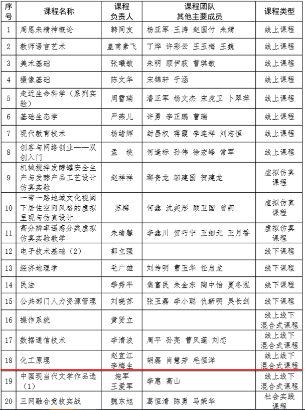 近日,江苏省教育厅发布了《省教育厅关于公布首批省级一流本科课程认定结果的通知》,淮阴师范学院包括化院《化工原理》课程等20门课程被认定为首批省级一流本科课程。