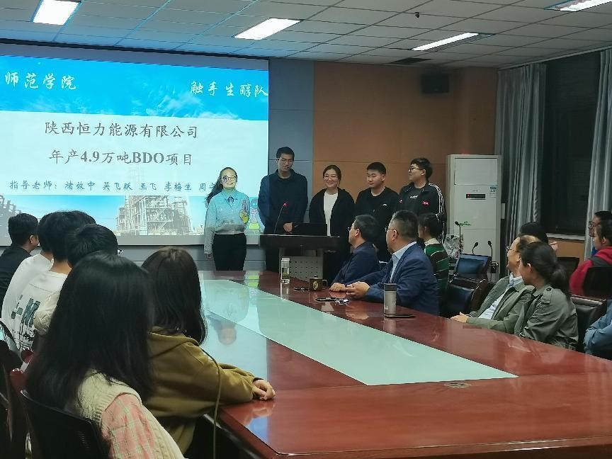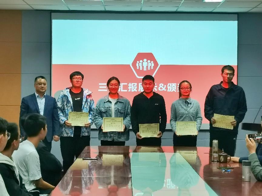 在本次见面会上,化工设计协会还邀请了在今年八月份举行的“天正设计杯”第十六届全国大学生化工设计竞赛中荣获国家二等奖的“触手生醇”团队进行汇报展示。全国大学生化工设计竞赛是我国化工专业认可度和参与度最高的学科竞赛,通过本次汇报展示,让化工专业新生们领略到化工专业的工程设计之美,感受到了学长学姐风们的自信,极大的激起了同学们的专业学习兴趣和热情。之后,周守勇院长为获得国家二等奖和三等奖的团队颁奖。