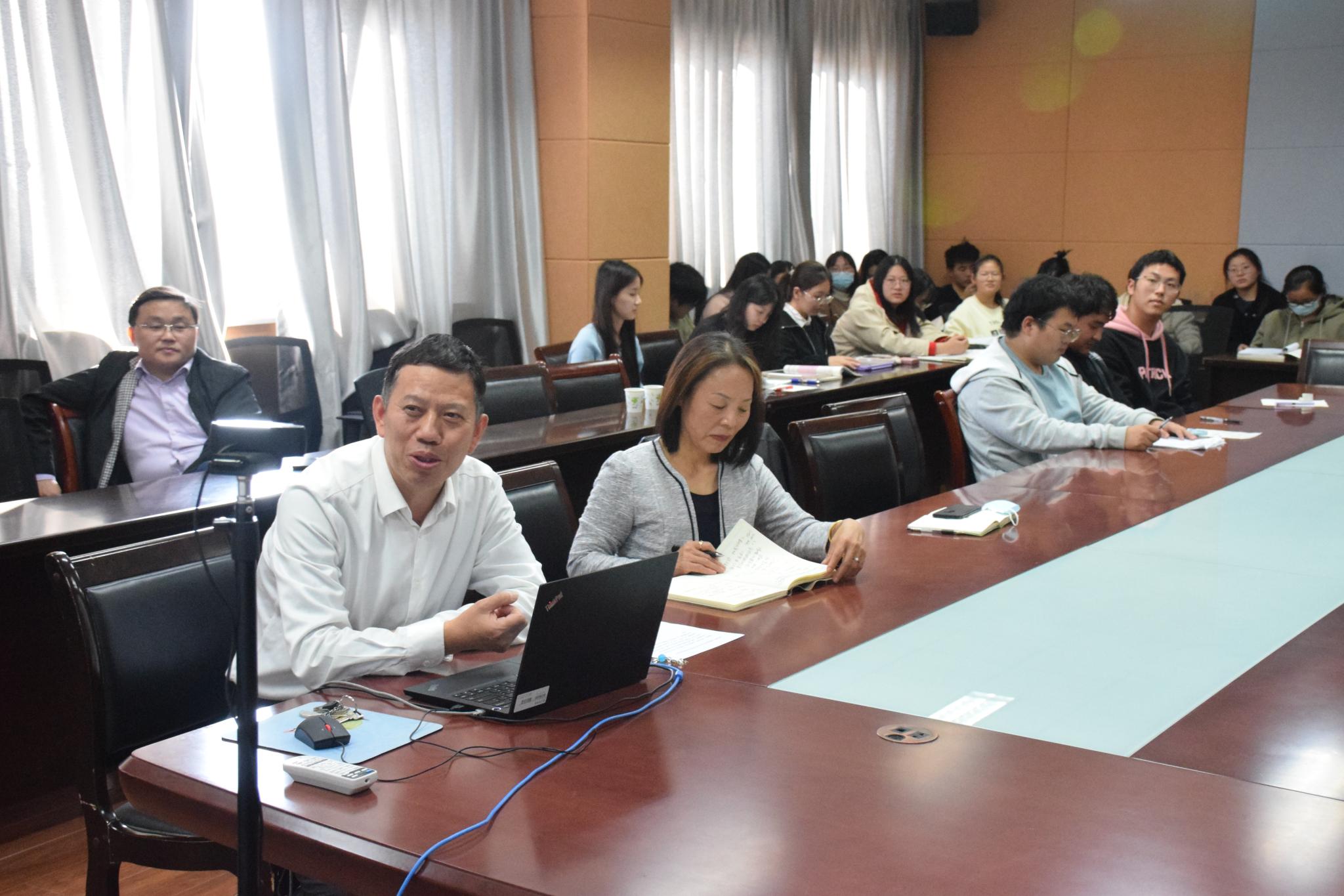教师职业基本技能是师范生从事教师职业所必须具备的基本素质,良好的教师职业技能是高校师范生成功从事教师职业的敲门砖,也是其今后在教育事业上发展的加速器。为了进一步促进师范生职业技能的培养,助力师范生更好地投入到教育事业中,10月18日下午在化学楼219会议室,我院邀请扬州大学景崤壁副教授为2020级师范生带来了一场题为“成熟教师导向的化学师范生职前技能训练实践与思考”的云讲座。周守勇院长、马奎蓉主任、刘炳华教授、阚玉和主任、部分化学系骨干教师以及2020级全体师范生参加了此次讲座。讲座由马奎蓉主任主持,周守勇院长对景崤壁副教授进行了介绍并表示热烈欢迎。