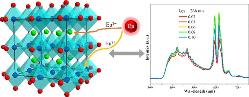 ABO3结构钙钛矿氧化物由于自身结构可调而被广泛应用于发光材料领域。双钙钛矿氧化物A2BB’O6与ABO3具有相同结构类型,但双钙钛矿氧化物A2BB'O6极大地拓宽了ABO3型钙钛矿氧化物在合成上的局限性。一般来说,A位离子是离子半径较大的离子,例如稀土金属离子或碱土金属离子;B位离子是半径较小的离子,如过渡金属离子。B位原子的八面体结构为通常由BO6和B’O6交替组成。A位原子位于空隙中,这对于发光材料的设计具有很大的优势。通常,在不同的基质中,Eu2+离子会呈现不同的颜色。目前,可调的Eu2+发光只能通过调控其在固溶体中的分量来实现。Eu2+在组分中的分量对实现Eu2+离子的可调发光具有重要意义。熔盐法可以提供一种较为封闭的反应环境,使得反应可以在缺氧条件下进行,还可以大大降低合成温度从而减少能耗。本论文通过熔盐法成功合成了一系列异价Eu掺杂的BITO: xEu荧光粉。在BITO: xEu荧光粉中,Eu3+和Eu2+离子共存。通过改变激发波长实现BITO: xEu荧光粉的可调发光。