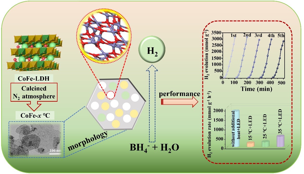 近日,淮阴师范学院能源催化团队联合培养研究生李宇欣在《International Journal of Hydrogen Energy》期刊上发表题为“Aboundent oxygen defects in CoFe-LDH derivatives for enhanced photo-thermal synergistic catalytic hydrogen production from NaBH4”的论文。《International Journal of Hydrogen Energy》是材料科学领域的重要期刊,最新影响因子为7.139,中科院2区期刊。