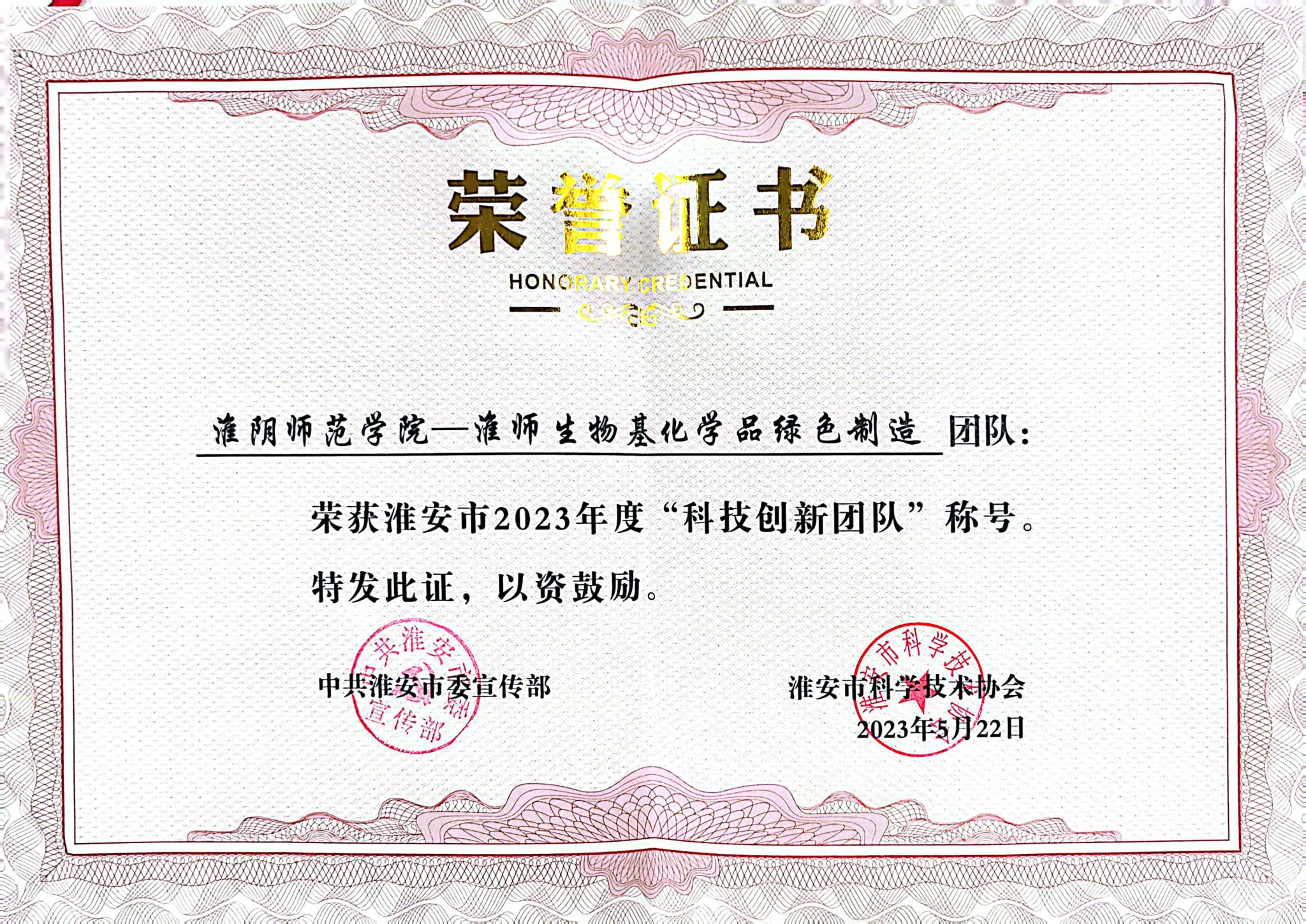 化院生物基化学品绿色制造团队获淮安市“科技创新团队”称号