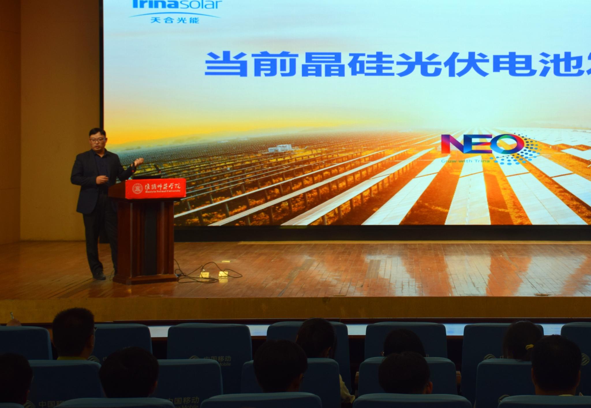 天合光能(淮安)科技有限公司人力资源总监张靖从政策端、产业端、产品端、应用端以及发展端等多维度向新能源系全体师生介绍了光伏产业的发展前景、天合光能的薪资待遇和职业发展策略。