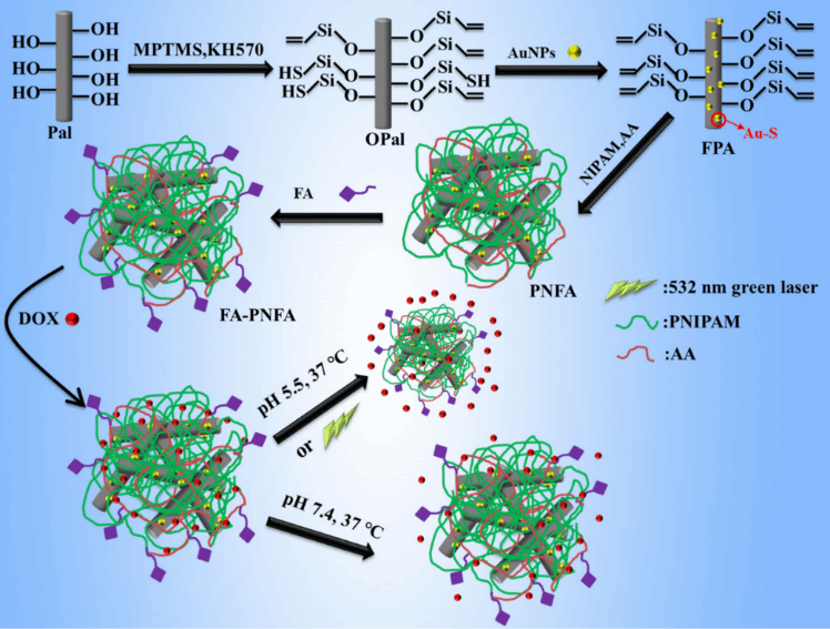 近日,淮阴师范学院低维材料团队在《Colloids and Surfaces B: Biointerfaces》上发表题目为 “Folic acid conjugated palygorskite/Au hybrid microgels: Temperature, pH and light triple-responsive and its application in drug delivery”的论文。该研究论文为淮阴师范学院与南京工业大学合作发表,淮阴师范学院为第二完成单位,仲慧教授和李小荣副教授作为共同通讯作者。《Colloids and Surfaces B: Biointerfaces》是生物医药类重要的国际期刊,最新影响因子5.800,中科院二区期刊。
